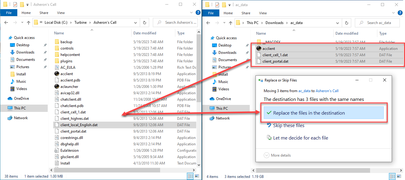 Copy and Paste all three files into your Turbine > Asheron's Call folder.