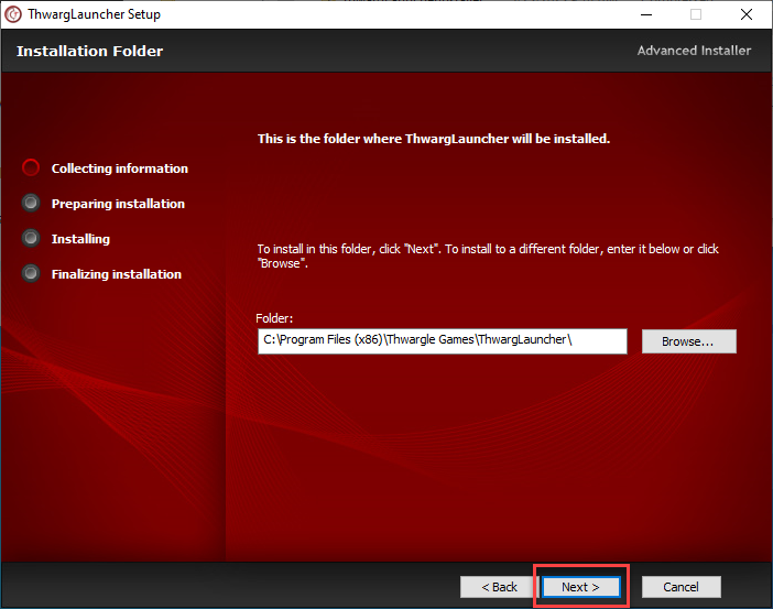 Next we are going to Browse to the C:\Program Files (x86)\Thwarle Games\ThwargLauncher